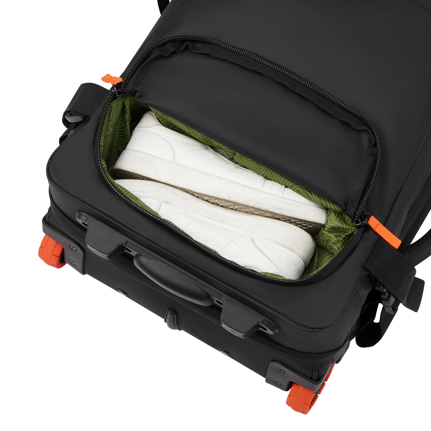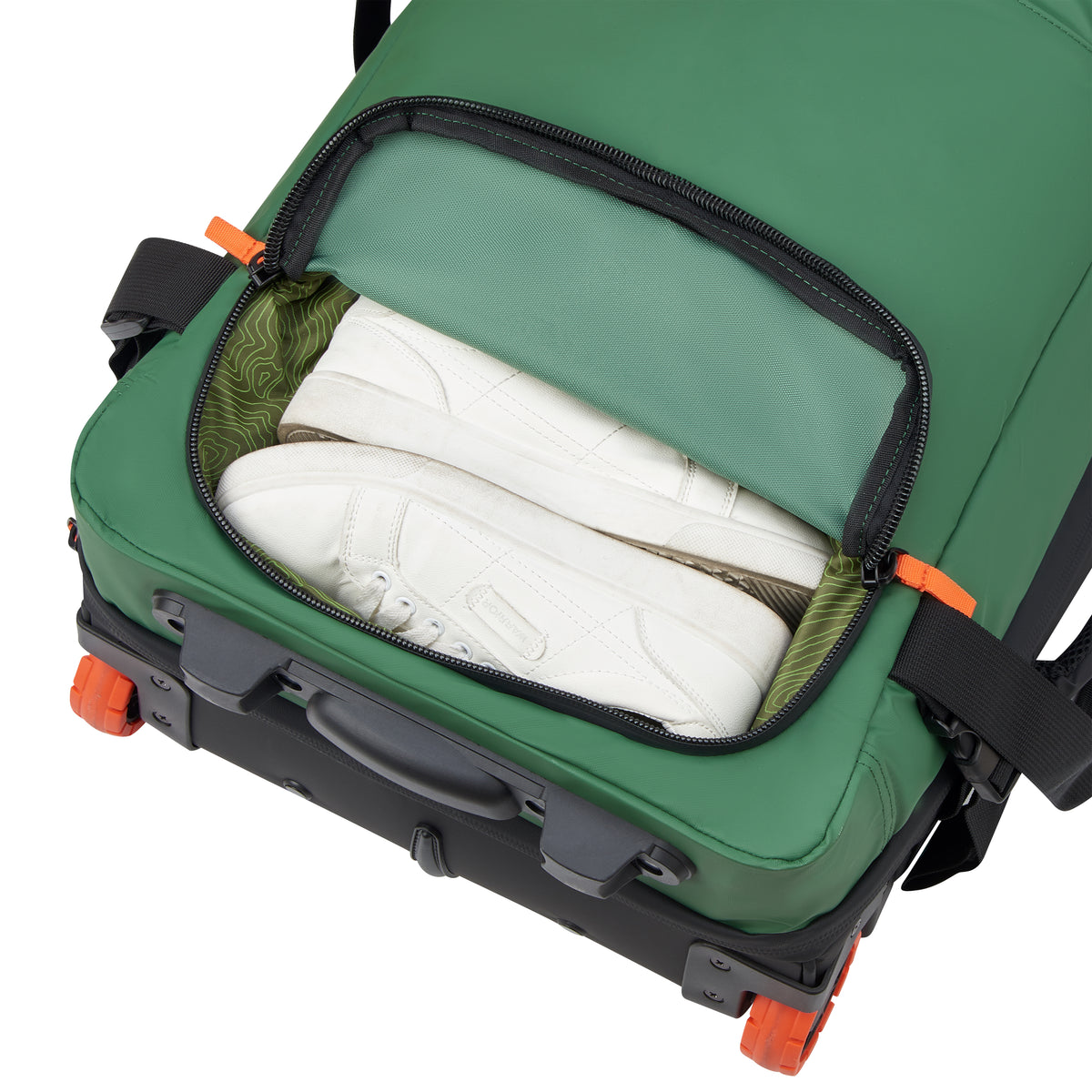 The travel bag has 2 reinforced handles: top and side, for easy, ergonomic handling. The trolley system and 2 wheels ensure effortless mobility and optimum comfort during all your adventures.