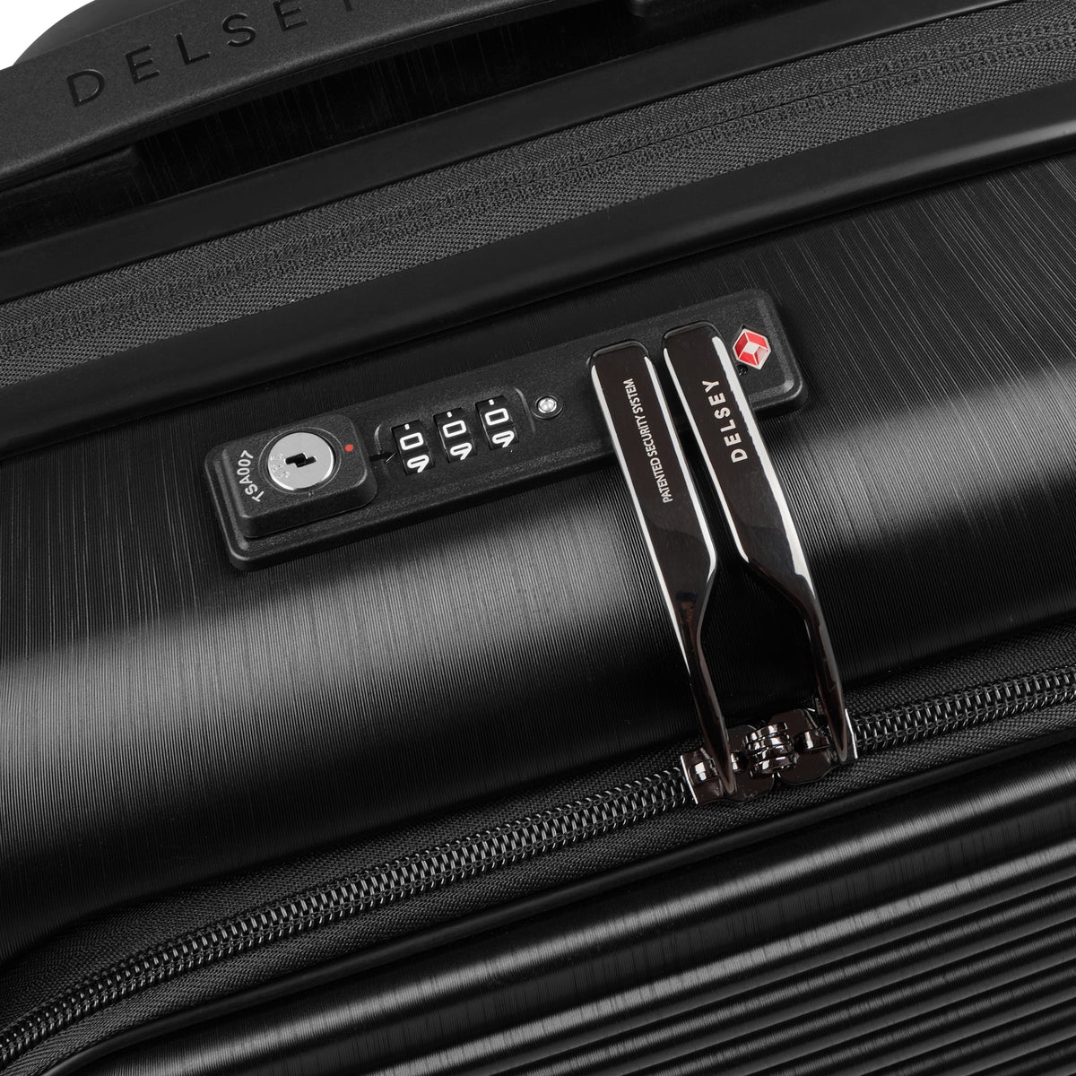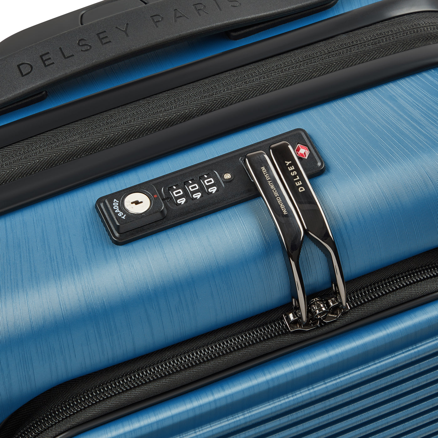 The case is fitted with DELSEY PARIS's patented ultra-secure fastening system: the SECURITECH® zip. This unique fastening is up to three times more resistant to intrusion than a conventional zip. Also equipped with the TSA code lock, the luggage can be locked using a personal code! The Transport Security Authorities (TSA) can check your case using a unique key reserved for their use.