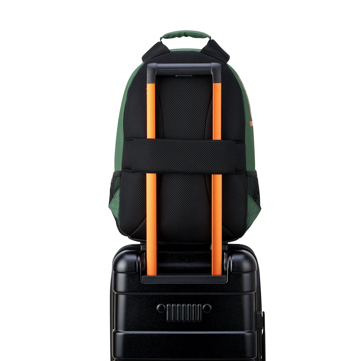 A support loop on the back of the bag allows it to be easily slid onto the trolley of the suitcase to bundle and roll the luggage in a single movement.