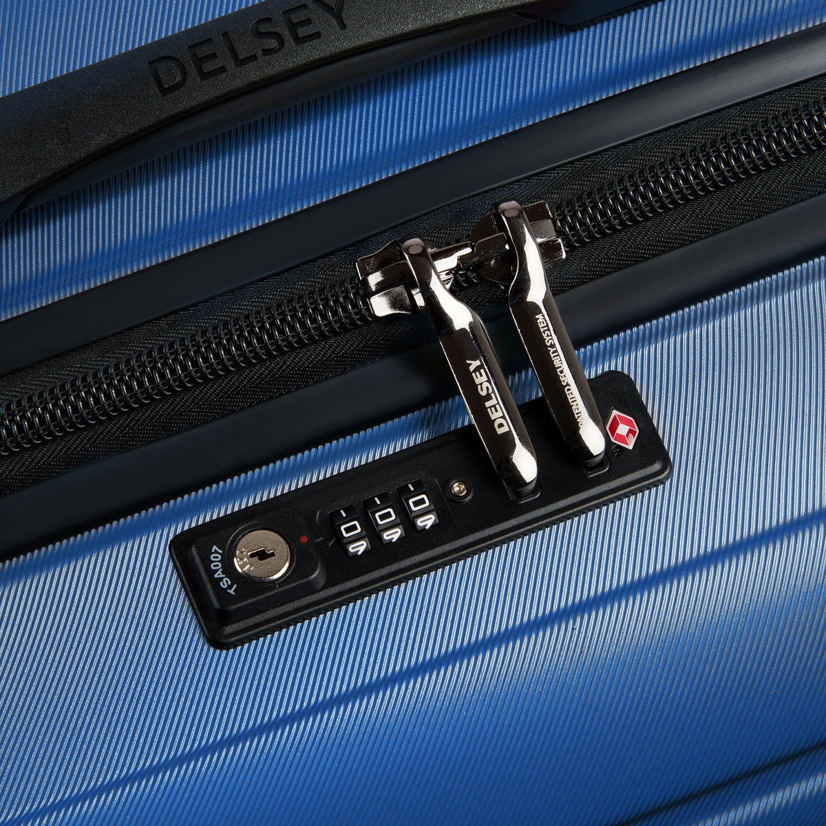 No more luggage damaged by customs! The TSA combination lock enables you to secure your luggage using your own personal code and, at the same time, allows the Transport Safety Authority (TSA) to check your luggage using a special key, without damaging it. Your luggage is equipped with the patented DELSEY PARIS ultra-secure closure system: the SECURITECH® 2 zip. This unique closure system is three times more difficult to break into than a conventional zip, thus providing optimal security for your luggage. The TSA combination lock and the original anti-theft zip are your best allies when it comes to travelling with complete peace of mind.