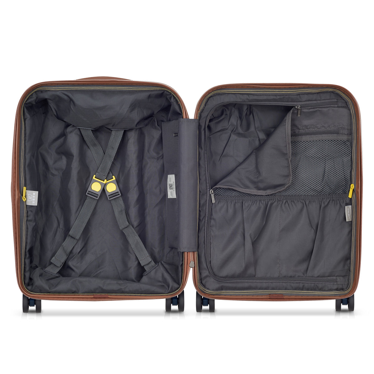 Expandable, this luggage offers even more storage space. To adjust the volume to your needs, unzip the yellow slider to deploy the expansion gusset.