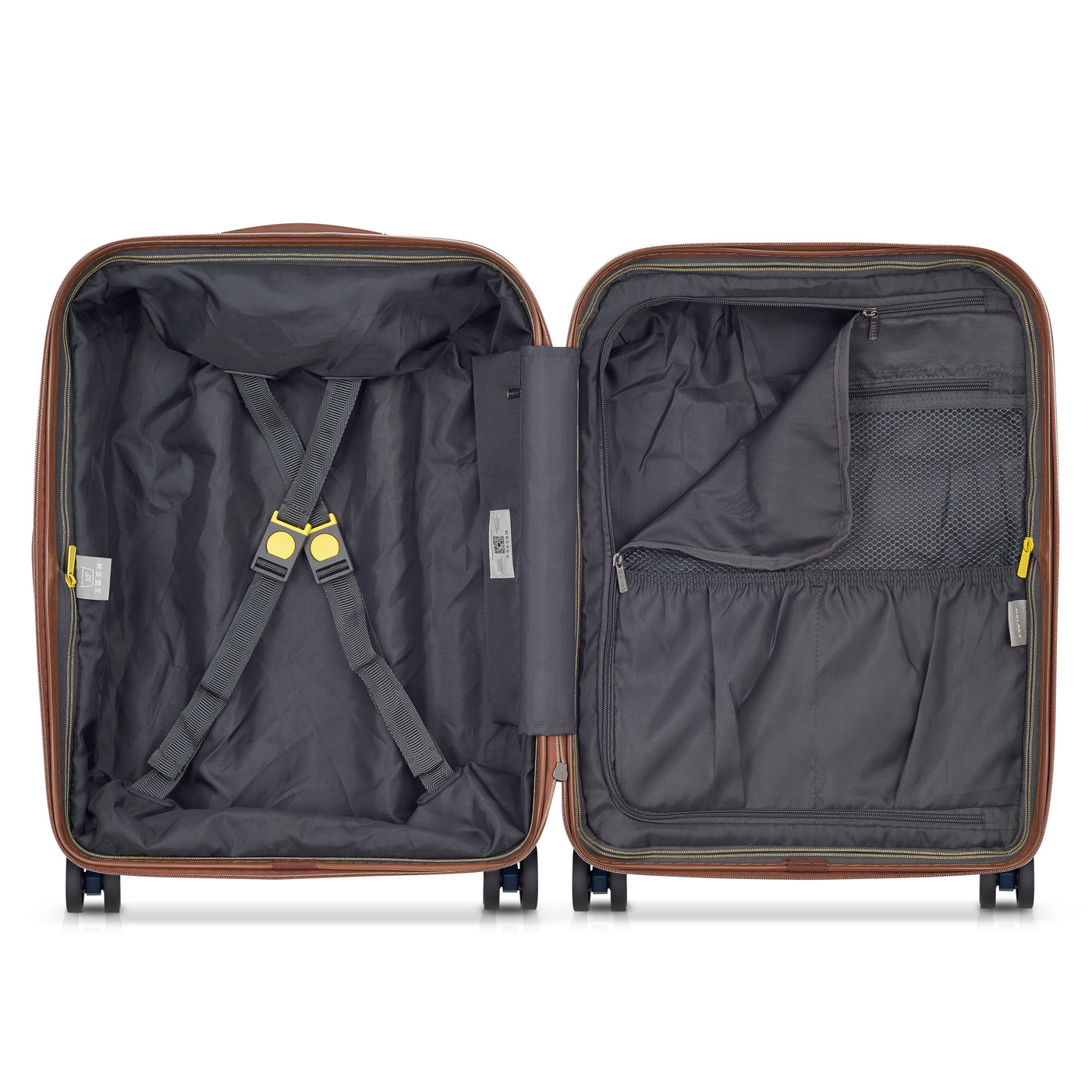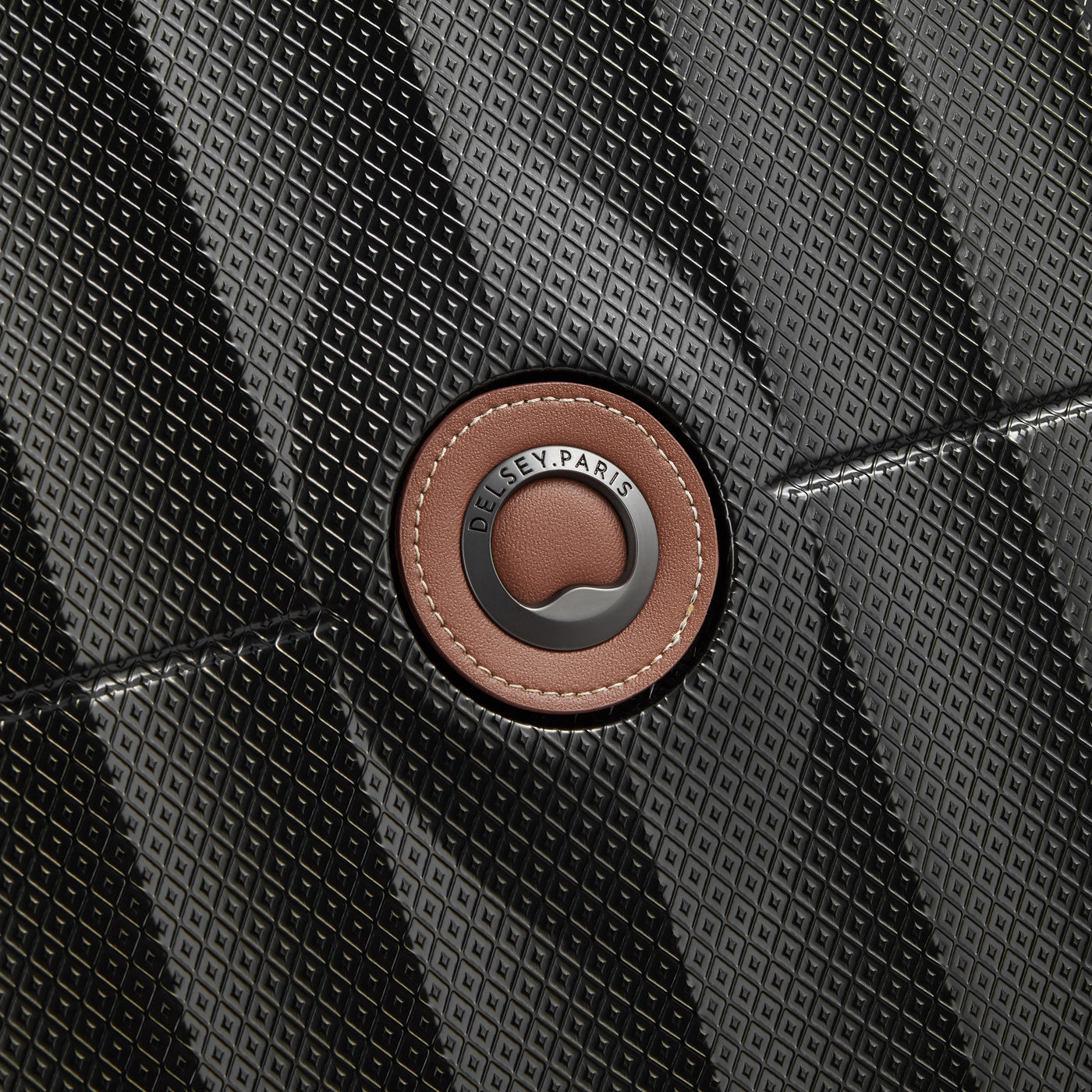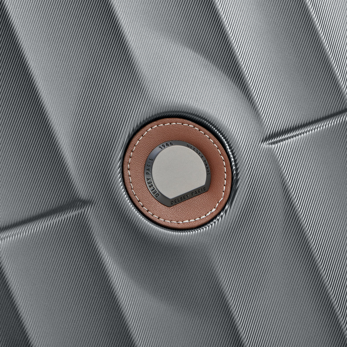 This luggage has an ultra-durable rigid shell, designed to withstand knocks and scratches thanks to its scratch-resistant finish. Its unique design is enhanced by touches of cognac vegan leather, for a distinctive style.