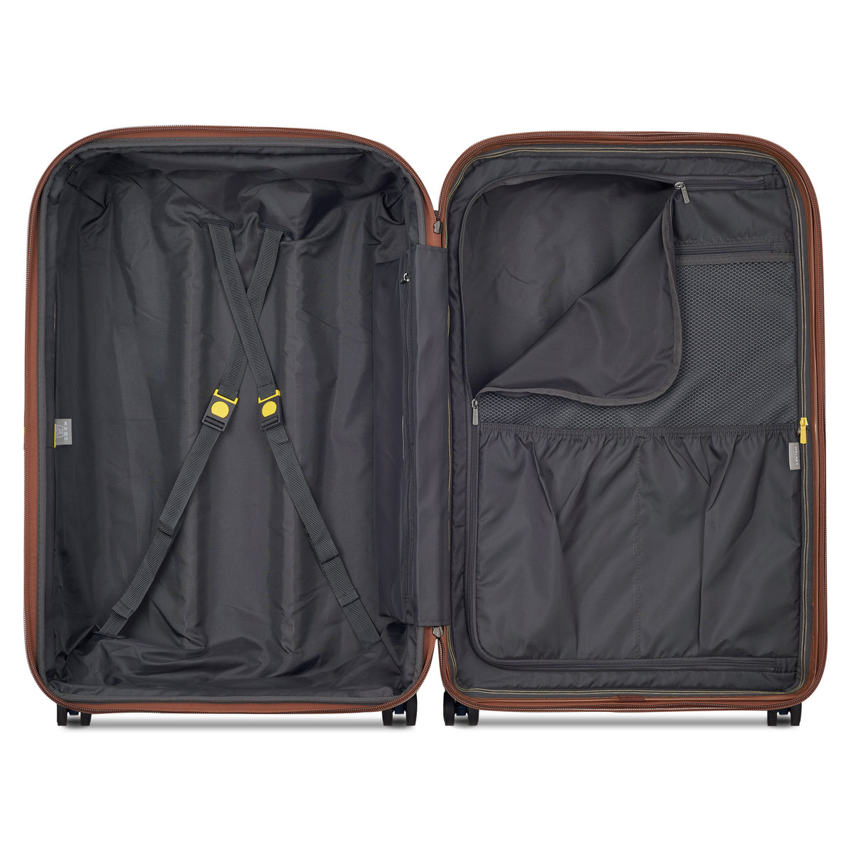 Expandable, this luggage offers even more storage space. To adjust the volume to your needs, unzip the yellow slider to deploy the expansion gusset.