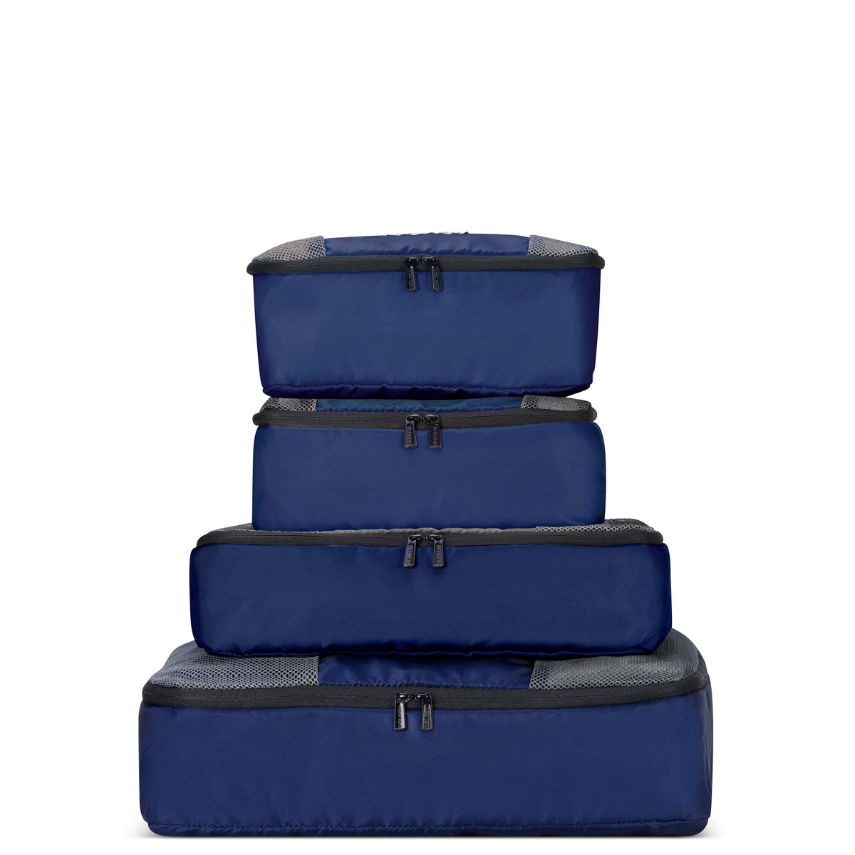 The largest packing cube measures 40 cm x 30 cm x 10 cm and is big enough to store a pair of shoes. The medium-sized cube measures 33 cm x 25.5 cm x 10 cm and is large enough to store a jumper and a pair of jeans. The 25 cm x 21 cm x 10 cm cube is ideal for T-. shirts and accessories. And finally, the smaller 25 cm x 11 cm x 10 cm cube is suitable for your small electronic devices.