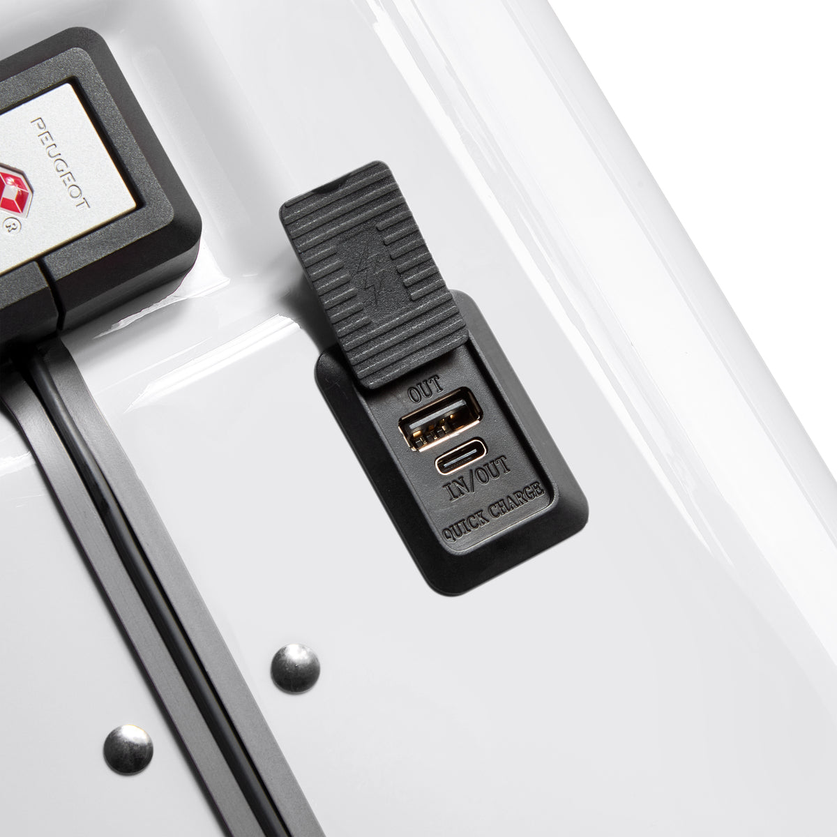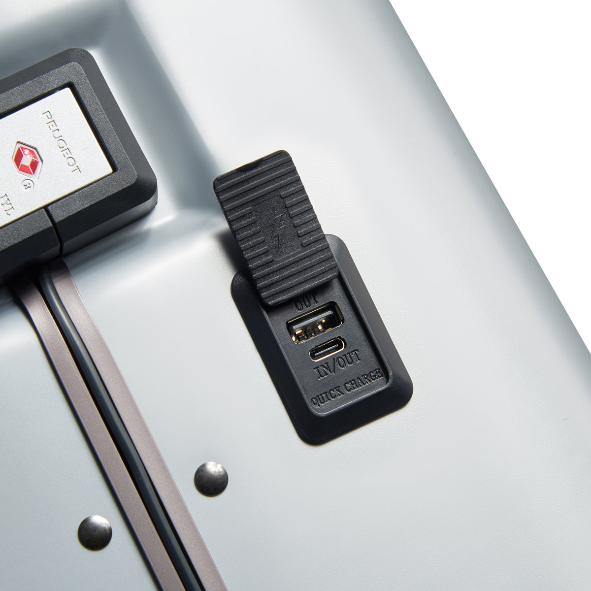 The design of the case has been thought out to make it ingenious and practical. The luggage has a USB port on the top of the case to plug in your phone. The external battery fits into a special inner pocket. The handles have an anti-microbial treatment which inhibits the growth of bacteria.